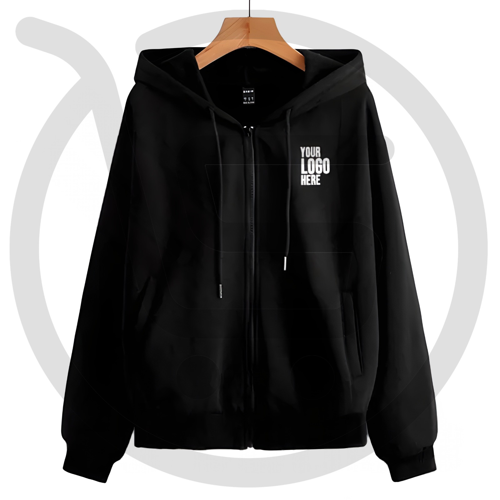 The sleek, all-black design makes it versatile for all kinds of audiences—employees, students, customers, or corporate teams. Its full front zipper, dual front pockets, and adjustable drawstring hood offer convenience and style. Best of all, it supports custom logo printing or embroidery on the front or back, making it a standout corporate gift or uniform piece.